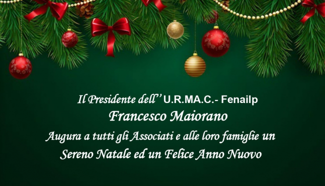Il Presidente FRANCESCO MAIORANO Augura ai Soci U.R.M.A.C. e alle loro rispettive famiglie gli Auguri più sinceri di Buon Natale ed un Sereno 2020